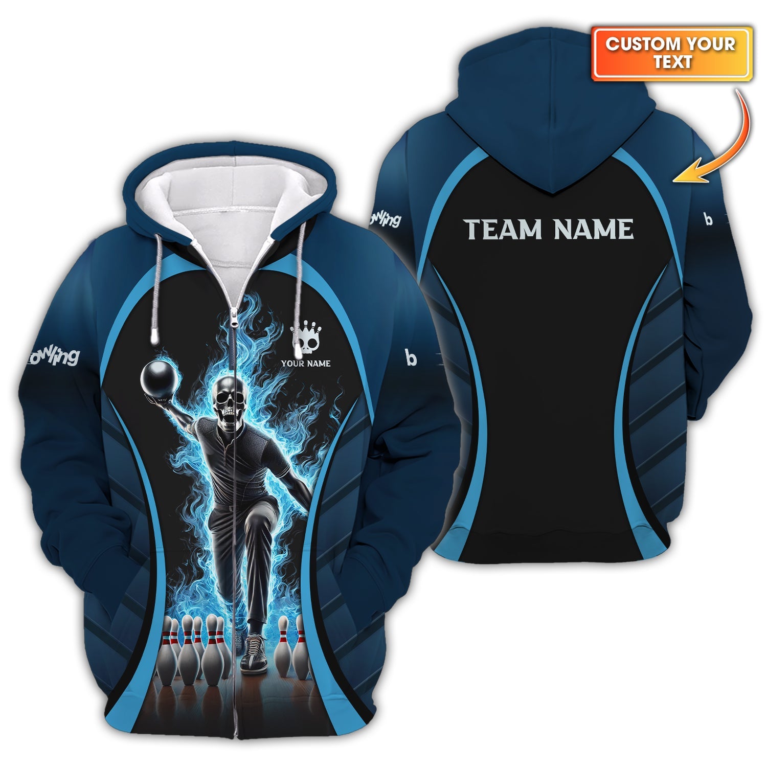 Custom Bowling AOP T-Shirts, Polo Shirts, Sweatshirts & Hoodies – Personalized with Your Name, Team, or Player Number!