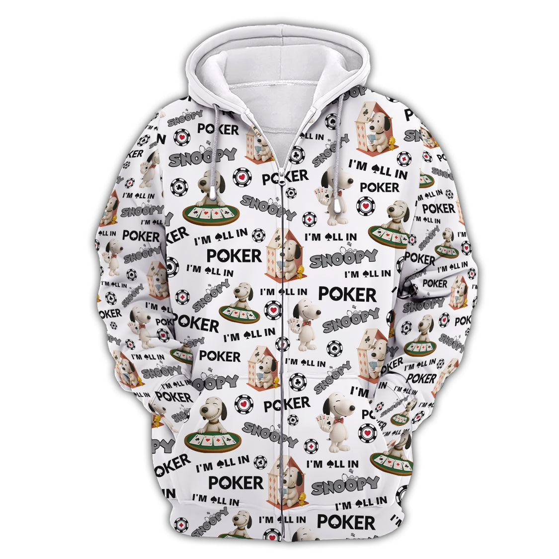 Snoopy Poker Shirt – Funny “I’m All In” Dog Poker Shirt – Cartoon Gambling Tee for Men