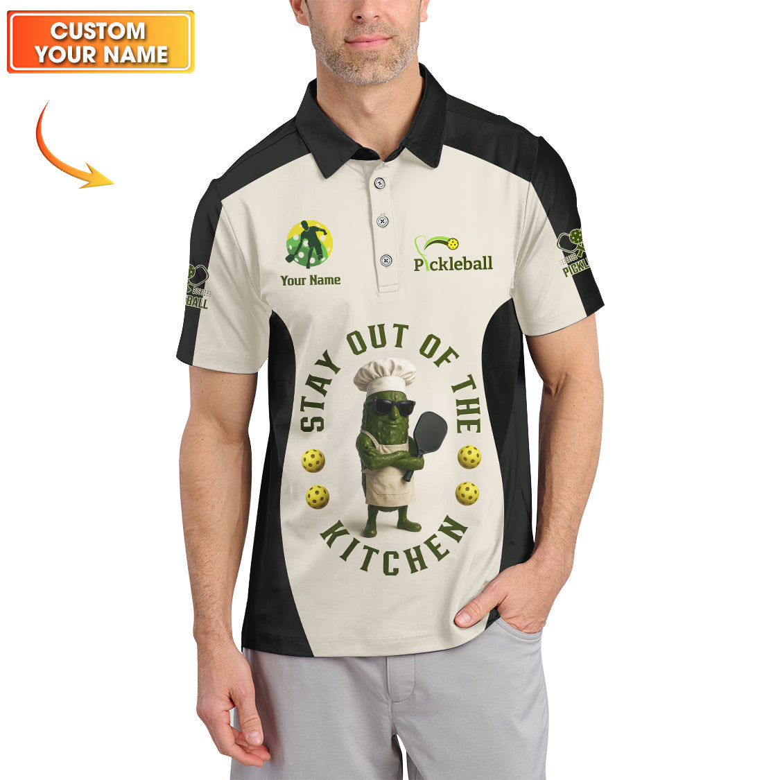 Stay Out of the Kitchen Pickleball Shirt, Funny Pickleball Shirts For Players, Custom Name Pickleball Polos