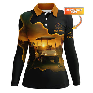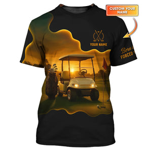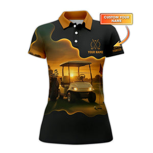 Sunset Golf Cart Custom Name Polos, Men's Golf Shirts, Funny Golf Shirt, Gift For Golfers