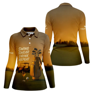 Swing Swear Drink Repeat Golf Wine Polos, Yellow Golf Shirt, Funny Golf Shirts For Golfers