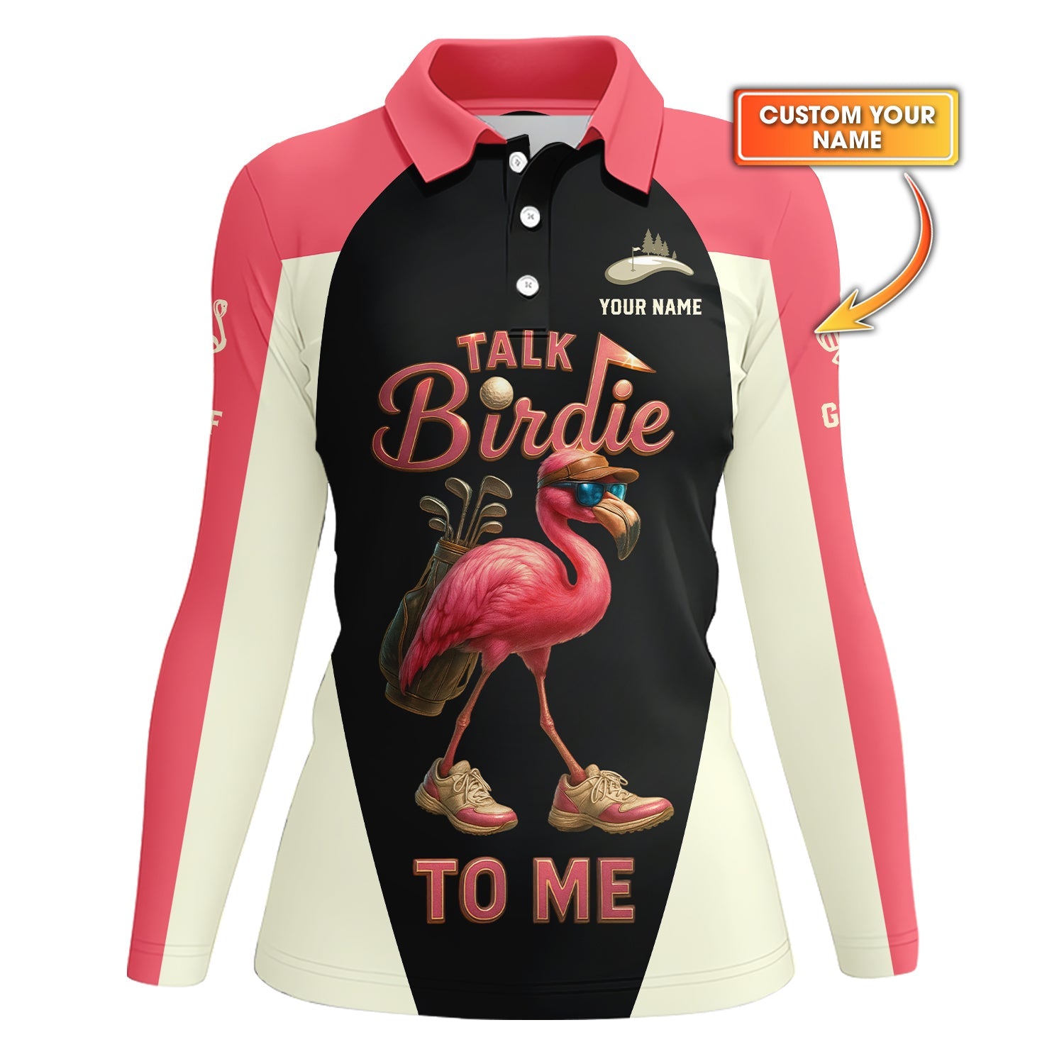 Talk Birdie To Me Flamingo Golf Shirts, Funny Custom Golf Polo, Golf Gift For Women's