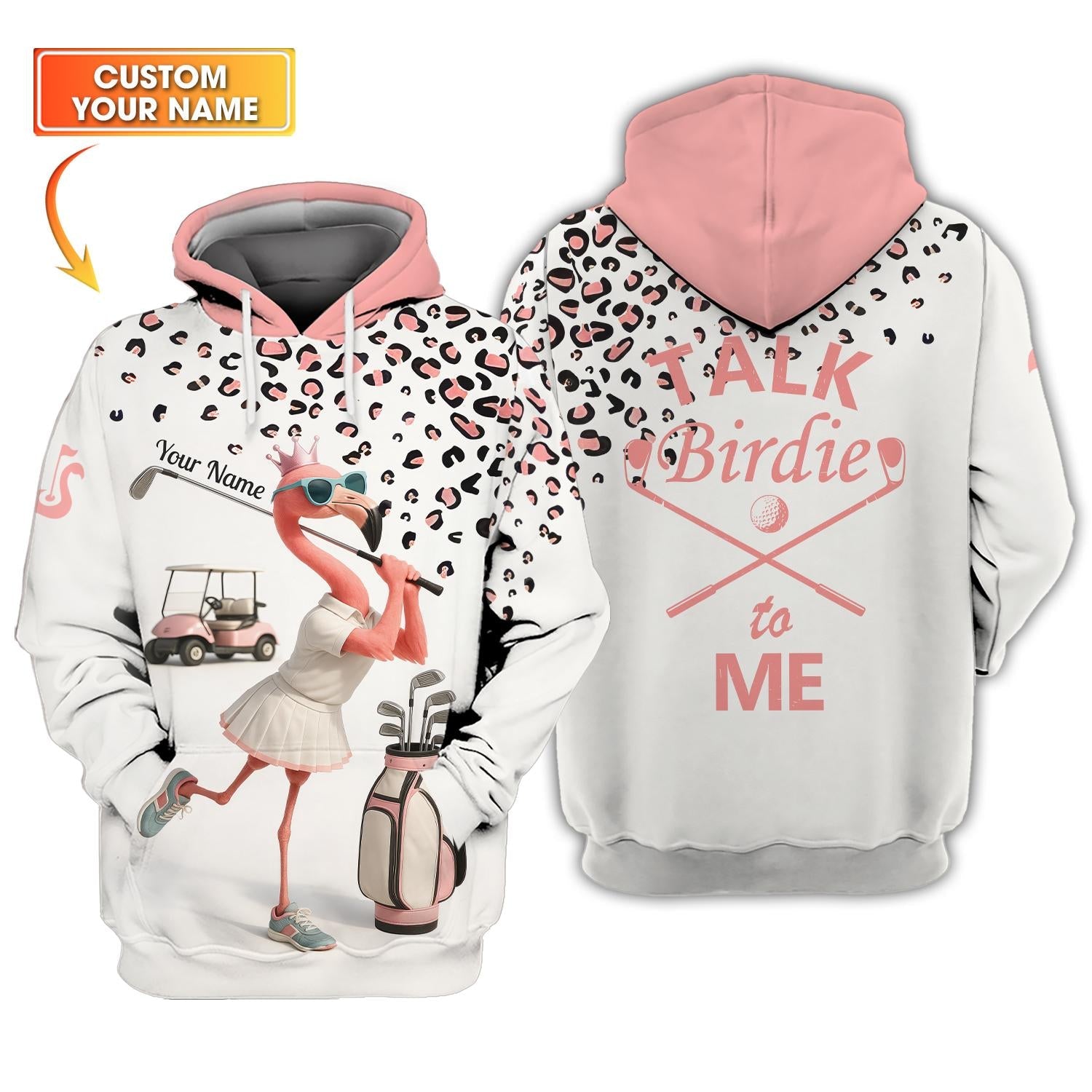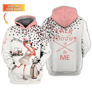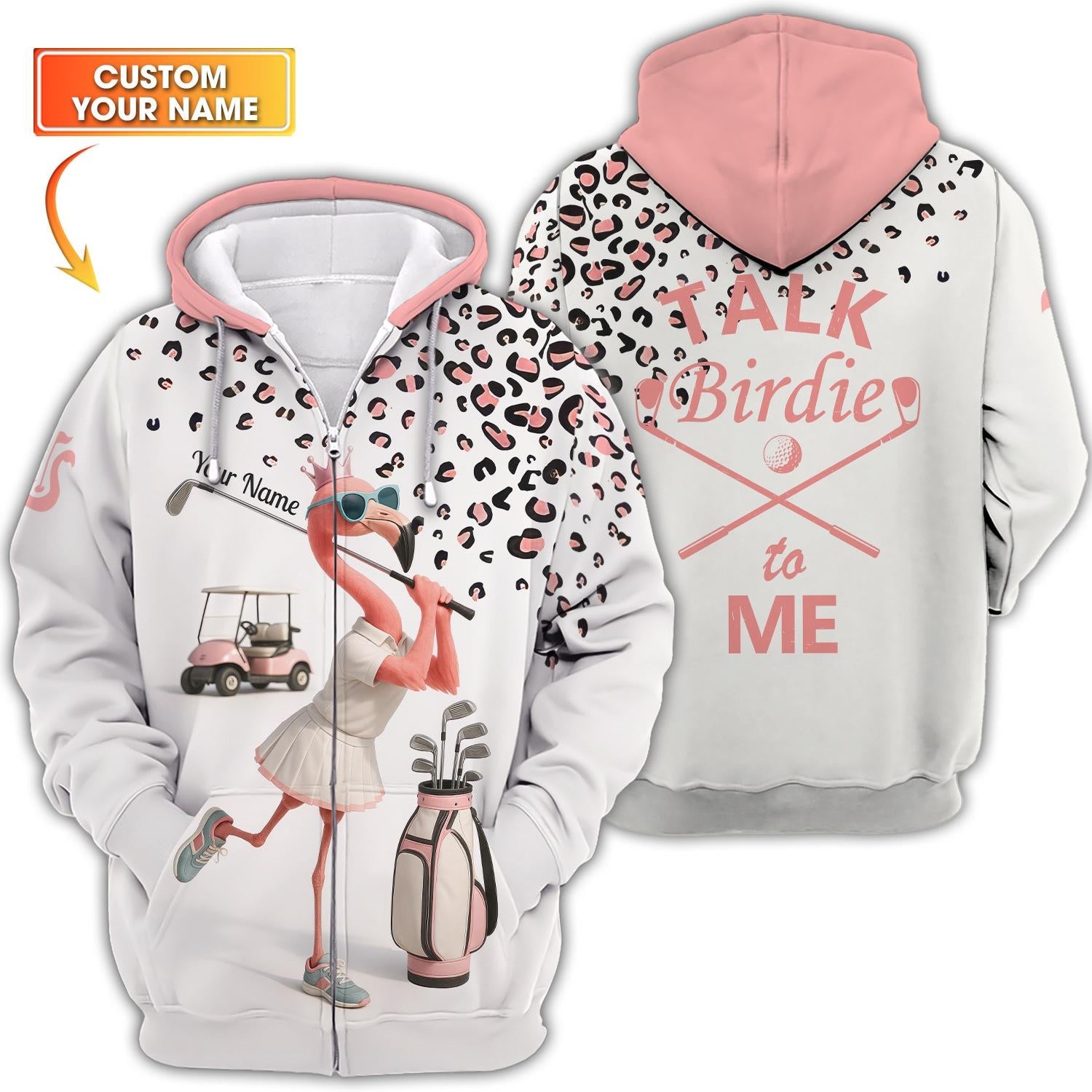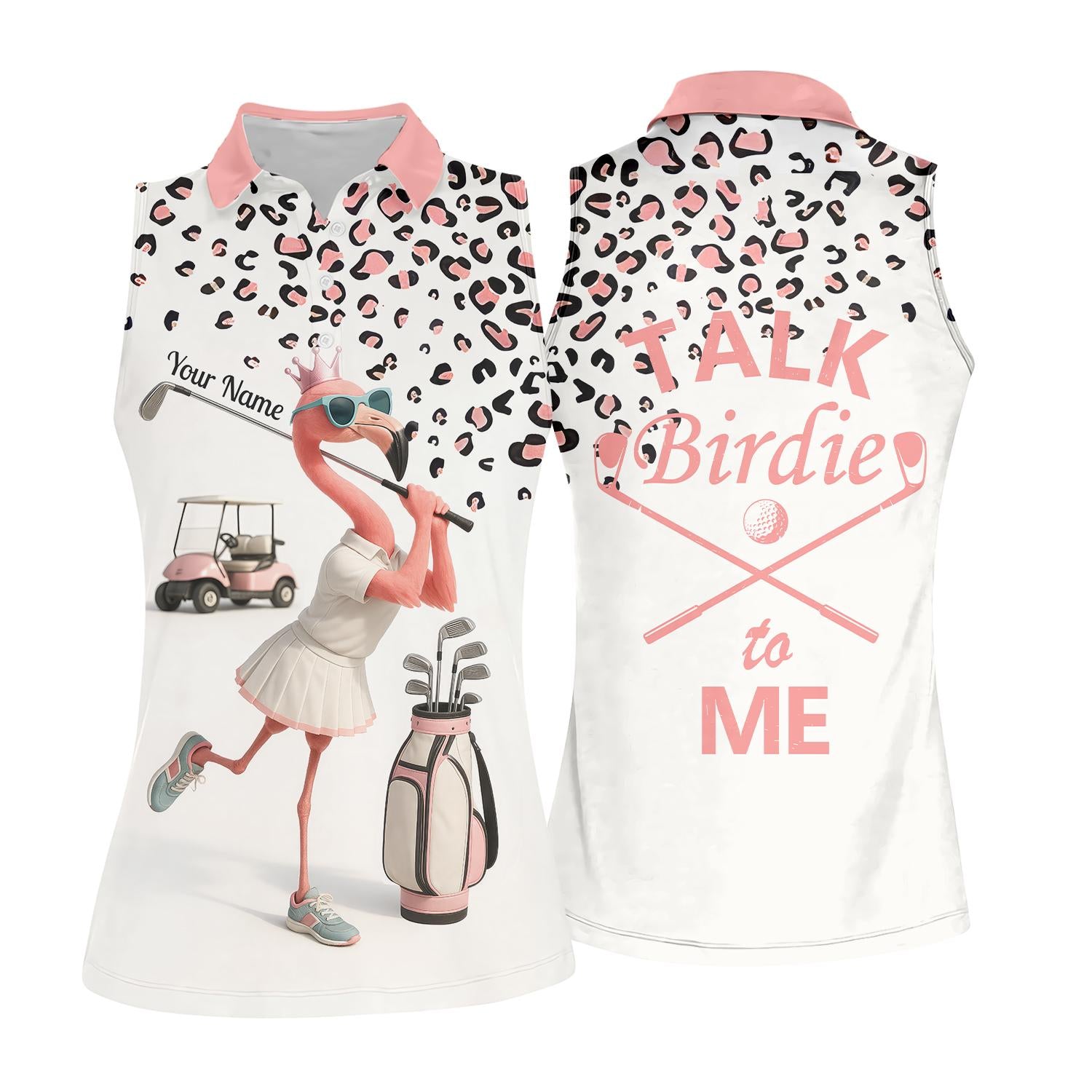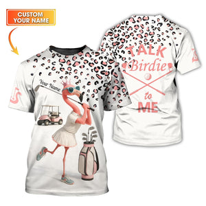 Talk Birdie to Me Flamingo Women's Golf Shirt - Pink Leopard Ladies Golf Polos - Personalized Golf Tee