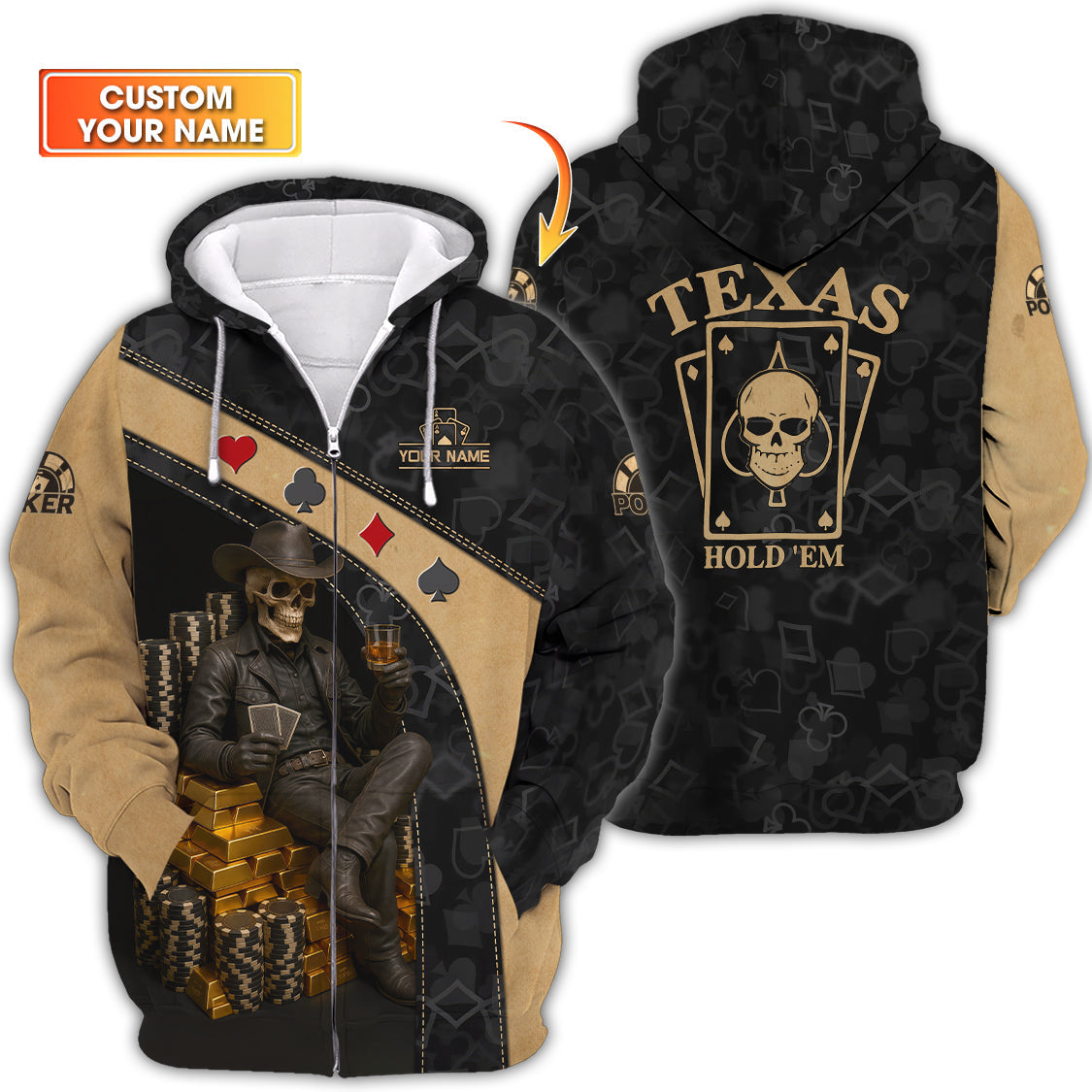 Texas Hold'em Poker Shirt, Skeleton Playing Poker Gifts For Poker Lovers