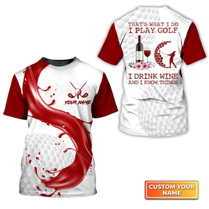 That's What I Do I Play Golf I Drink Wine, Personalized Name 3D Tshirt Gift For Golfer