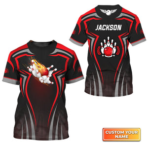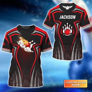 The Red Bowling Ball Crashing The Pins Personalized Name 3D Tshirt