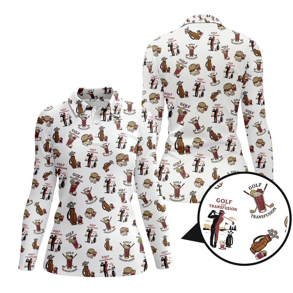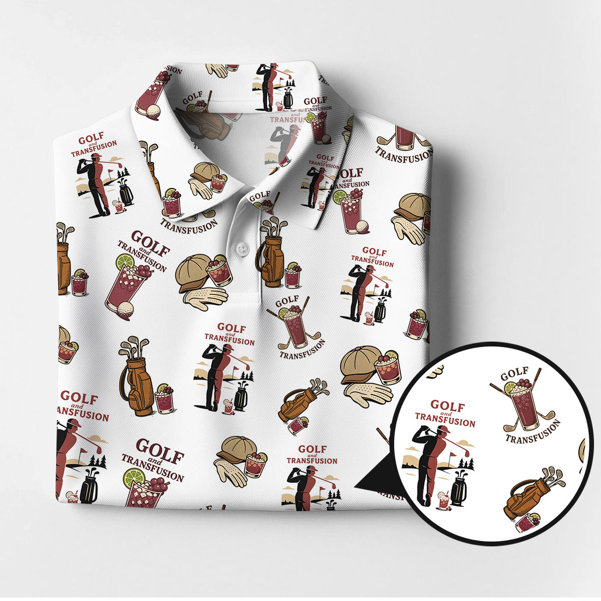 Transfusion Golf Shirt, Golf Transfusion Drink Pattern Polos, Men's Golf Shirts