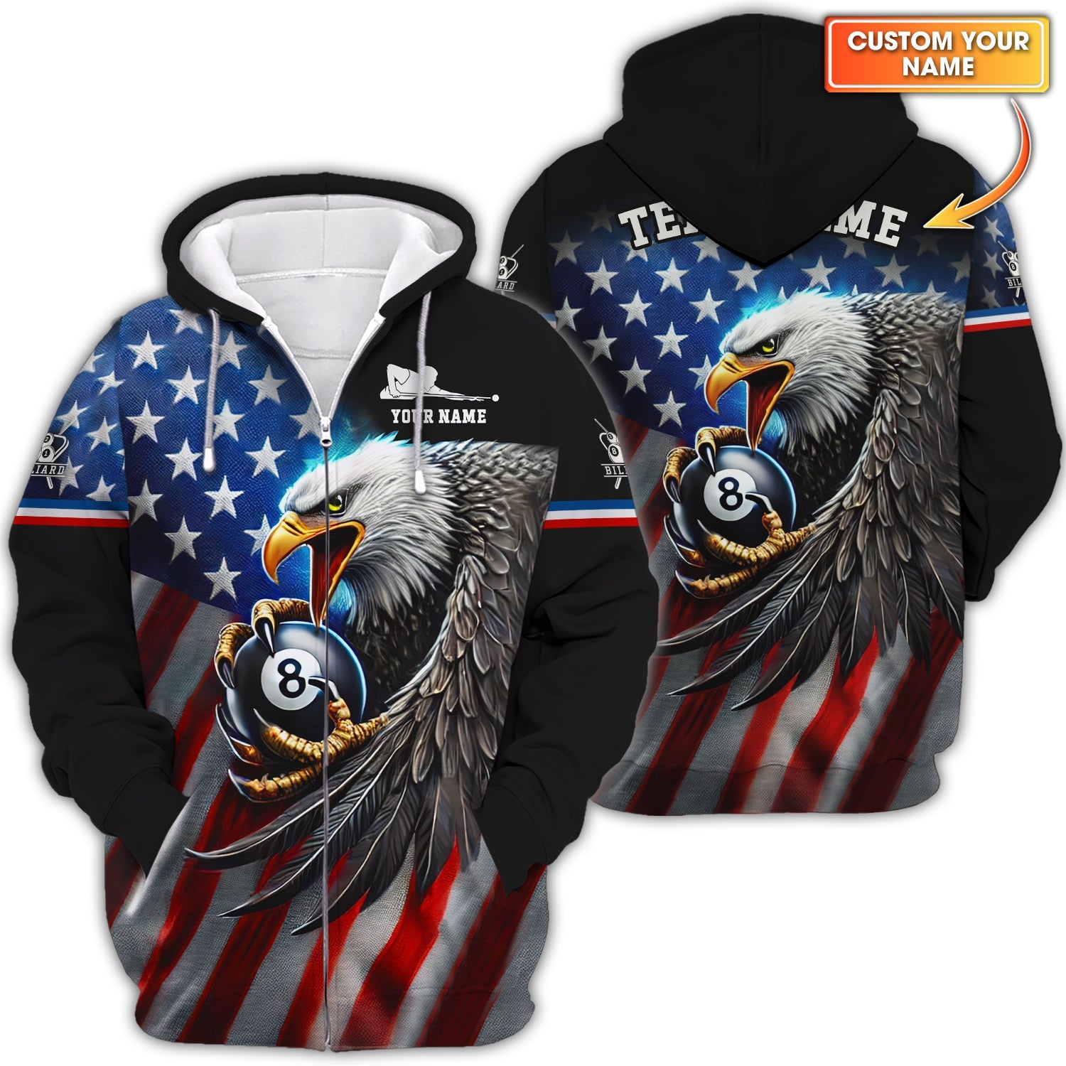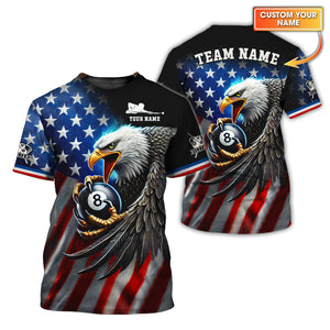 USA Flag-Eagle hold 8-ball Billiards Custom T shirt, Billiards Polo, Gift For Billiards Players