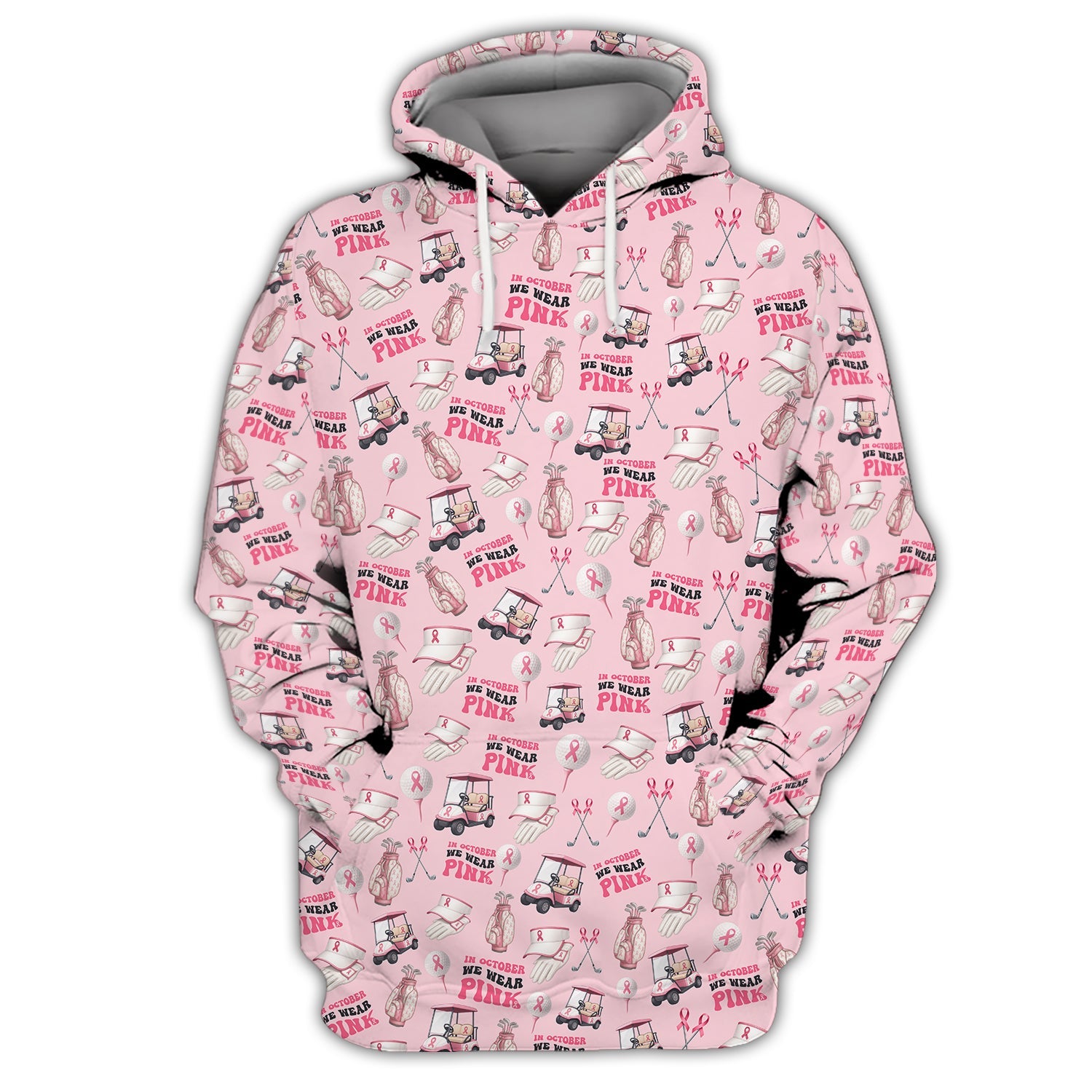 We Wear Pink In October Shirt For Golfer, Pattern Golf Shirt, Breast Cancer Golf Shirt For Women