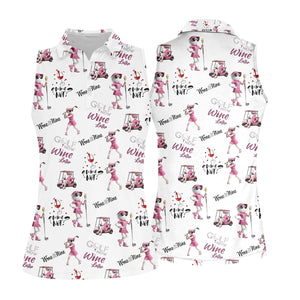 Wine and Golf Sleeveless Personalize Polo – Women's Nine Ball Shirt – Funny Golf Wine Not Design