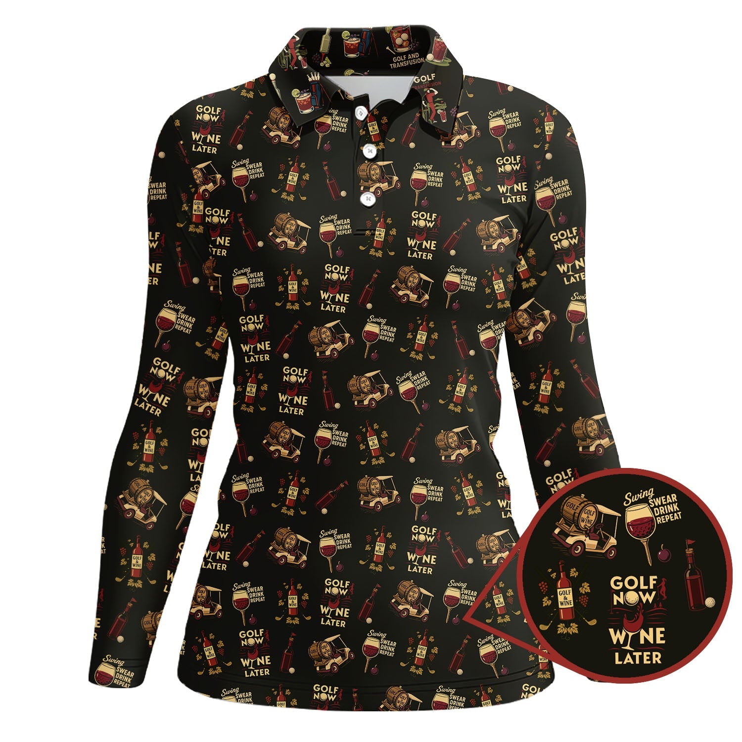 Wine Golf Shirt, Funny Ladies Golf Shirt, Wine And Golf Cart Pattern Polos