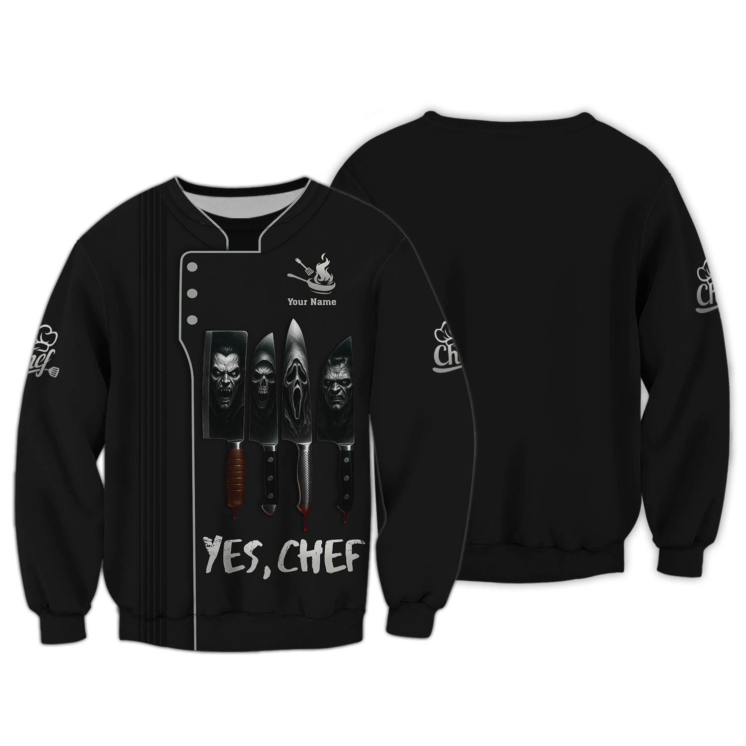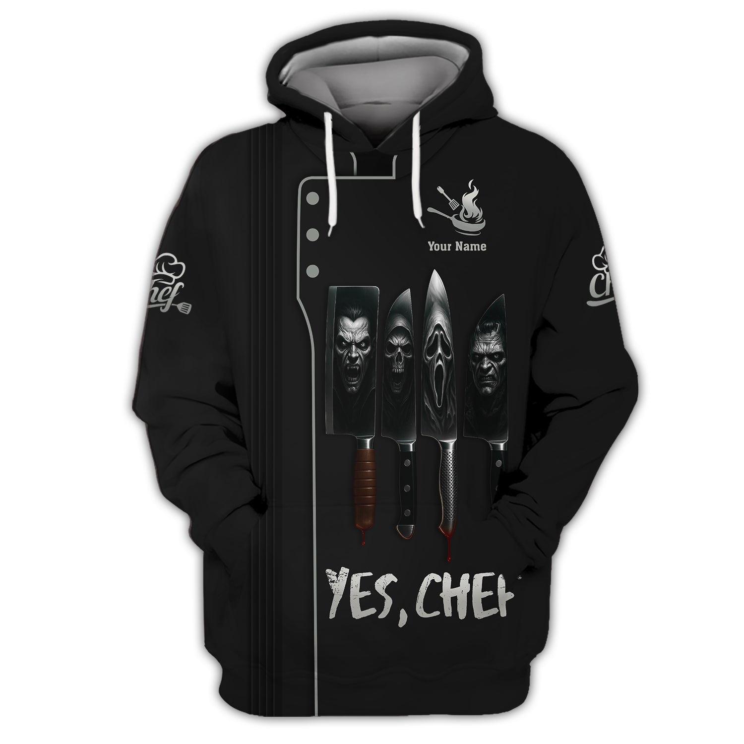 Yes Chef Halloween Outfit For Cooking Lover, Scary Knife Chef Shirt, Horror Chef Uniform For Kitchen